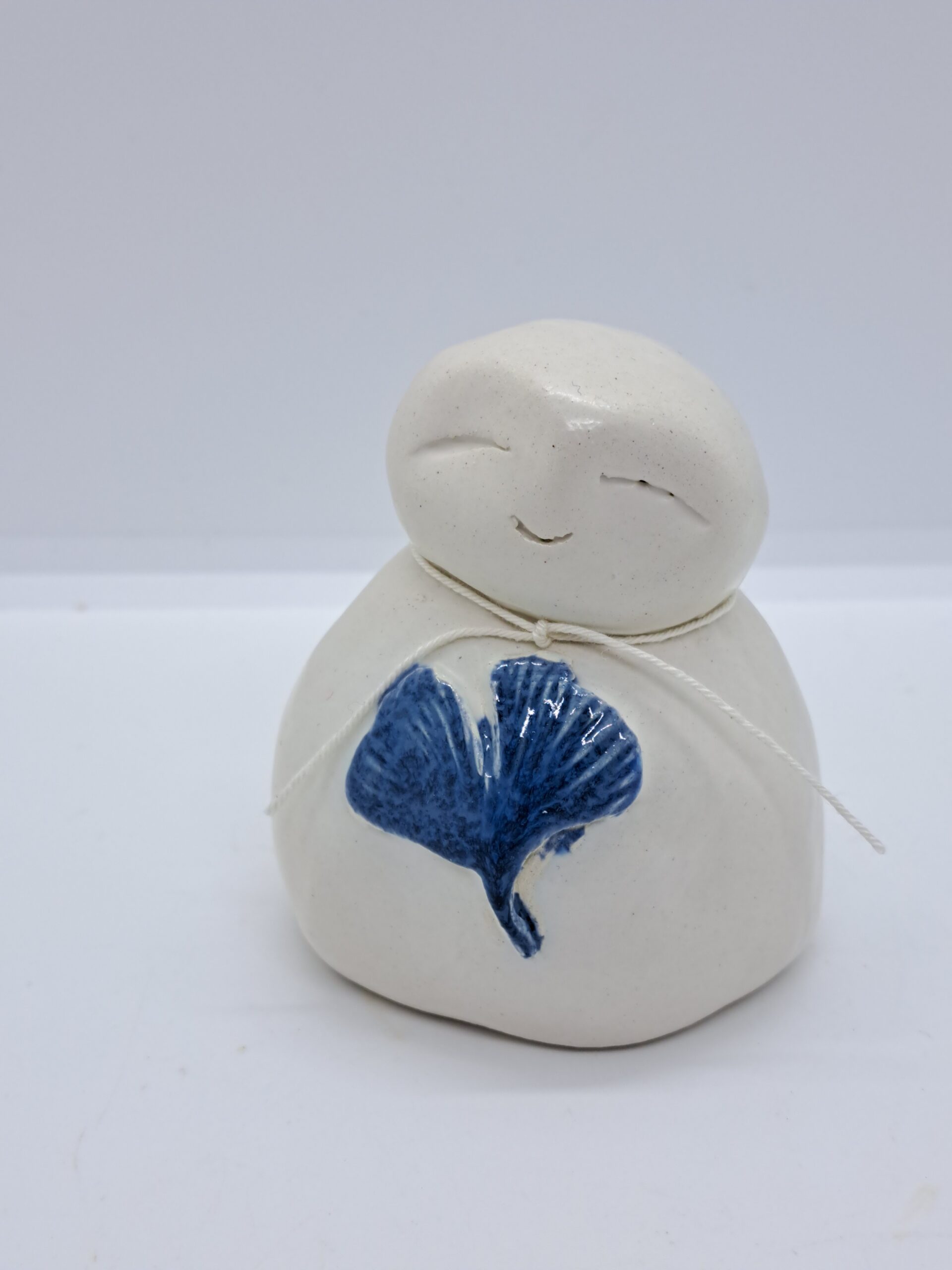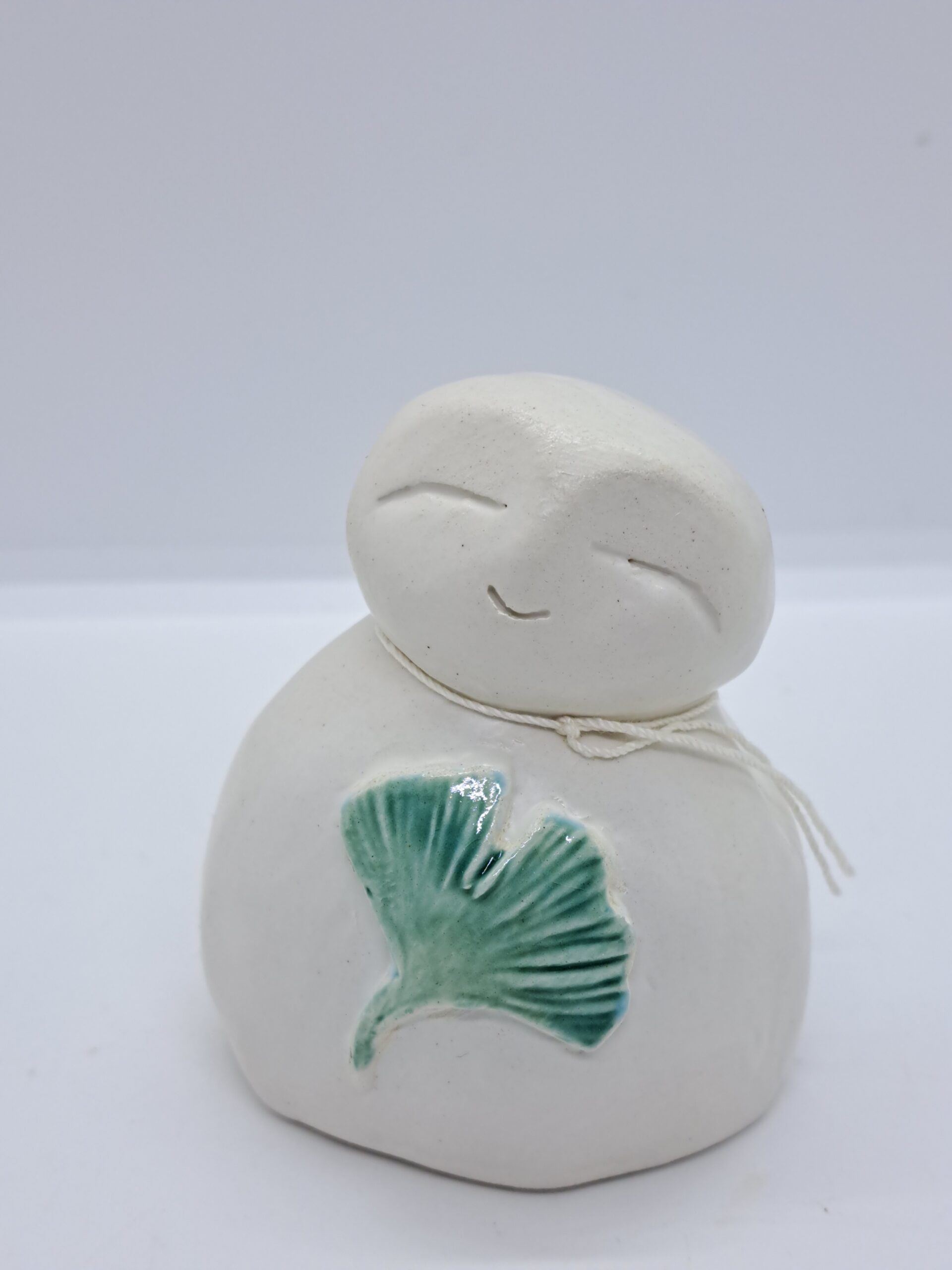 Le Jizō, figure de douceur et de protection dans la tradition japonaise, veille sur les enfants, voyageurs et âmes en quête d’éveil, offrant réconfort et courage. Chaque pièce que je crée est unique, façonnée en céramique, et porte une énergie bienveillante, parfois ornée de motifs inspirants comme le Ginkgo biloba, symbole de résilience, équilibre et renouveau. Associé à la symbolique du cœur, le Jizō devient un messager d’amour et de sérénité, invitant à l’harmonie et à la méditation.